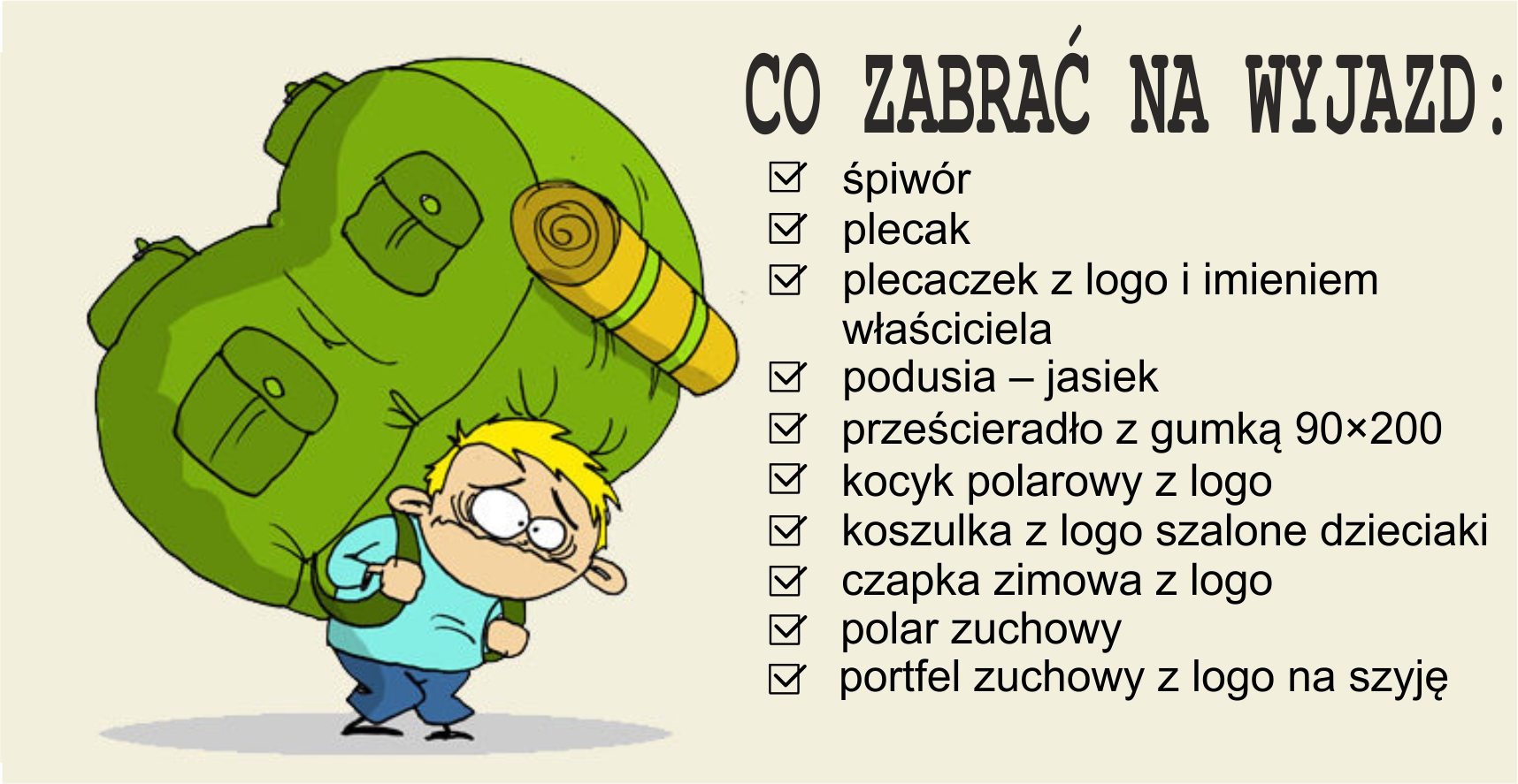 Każdy zuch powinien gromadzić sukcesywnie wyposażenie, które będzie potrzebne na wyjazdy zarówno na biwaki, jaki na kolonię czy zimowiska. OBOWIĄZKOWO